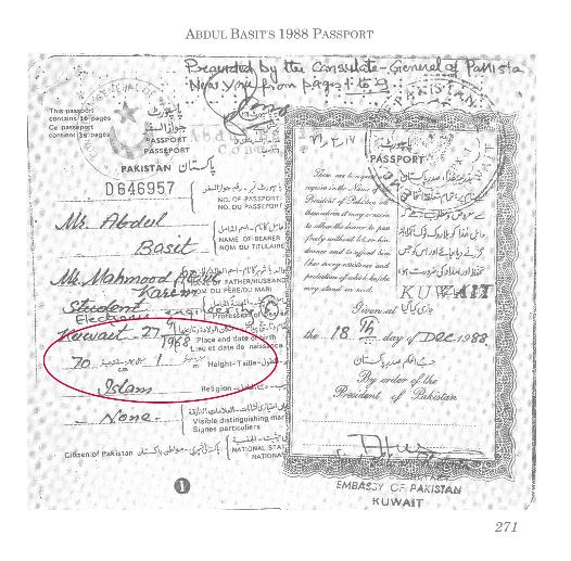 passport issued to Abdul Basit Karim in 1988 gives a height of 170 centimeters (5'7"). Moreover,